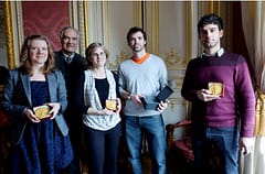 Remise du Prix Gabriel Tarde (11.12.2013) : de gauche à droite : Veerle Massin, Christian-Nils Robert (président du jury), Caroline Touraut, Xavier de Larminat (lauréat) et Jérémie Gauthier